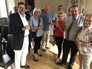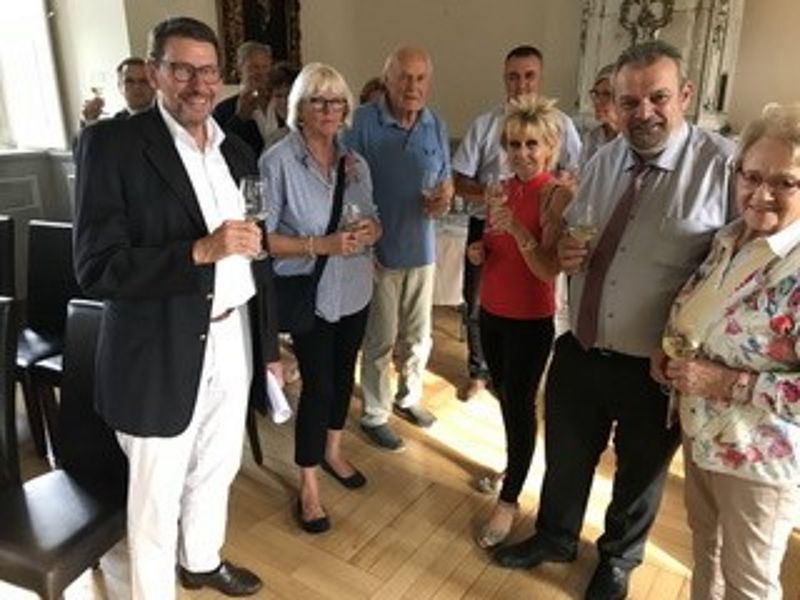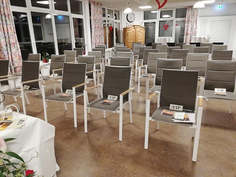 Eingeladen waren alle Mitglieder und Freunde unseres Fördervereins, natürlich unsere SeniorenInnen, ihre Angehörigen und die Mitarbeiter des Hauses Wilhelmine. Der Eintritt war kostenfrei, ebenso die Bewirtung mit Sekt aus der Sektmanufaktur Schloss Vaux -danke für die großzügige Spende-,kaltem Riesling aus dem Keller des Fördervereins und frischem Gebäck, gespendet von der Familie Hashagen.