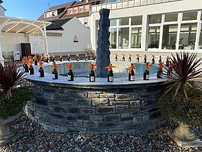 Unser Förderverein, Vorstand und Mitglieder sind stolz auf Sie, unserem Team im Haus Wilhelmine. Aber nicht nur stolz, sondern auch dankbar. Nehmen Sie dafür unser Dankeschön, das wir rund um den Brunnen für Sie aufgebaut haben."